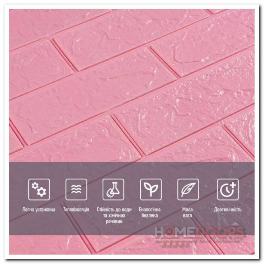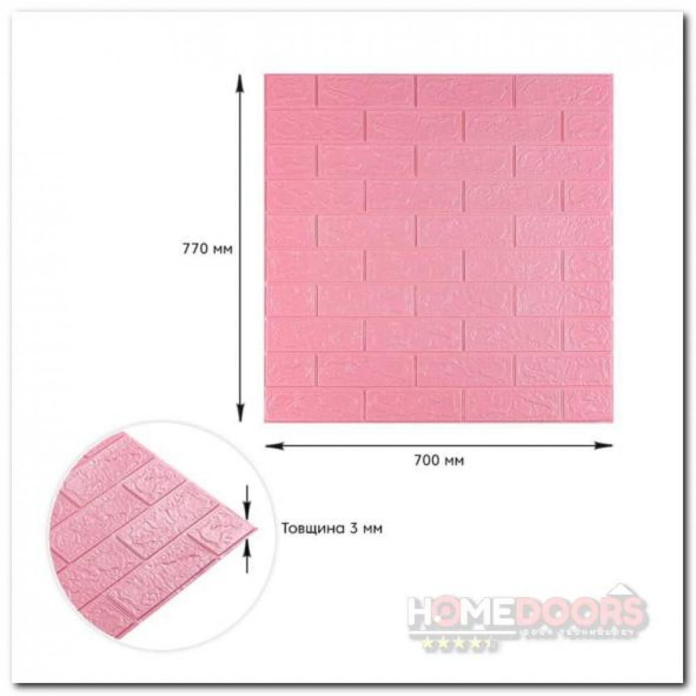 Декоративная 3D панель самоклейка под кирпич Розовый 700x770x3мм