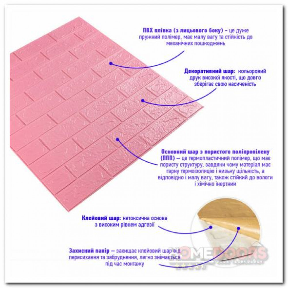 Декоративные 3D панели на самоклеющейся основе под розовый кирпич. Теперь можно с легкостью сделать ремонт за 1 день! При этом не нужно искать подрядчиков для ремонта, нет пыли и строительного мусора в доме.