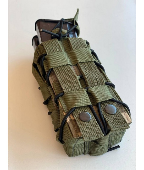 Підсумок подвійний для магазинів АК виготовлений з якісних матеріалів. Система кріплення - MOLLE , яка посилена кнопками, фронтальна частина оснащена інтерфейсом, що дозволяє закріпити додаткову екіпіровку, наприклад пістолетний підсумок, турнікет, карабін та інші дрібні речі.