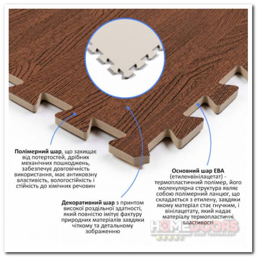 Пол пазл - модульное напольное покрытие 600x600x10мм дерево темное