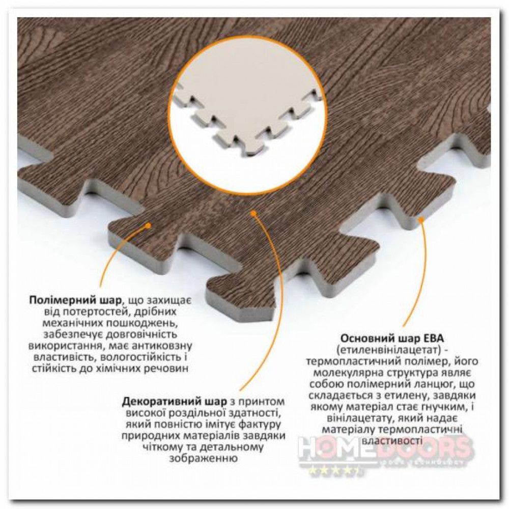 Пол пазл - модульное напольное покрытие 600x600x10мм коричневое дерево