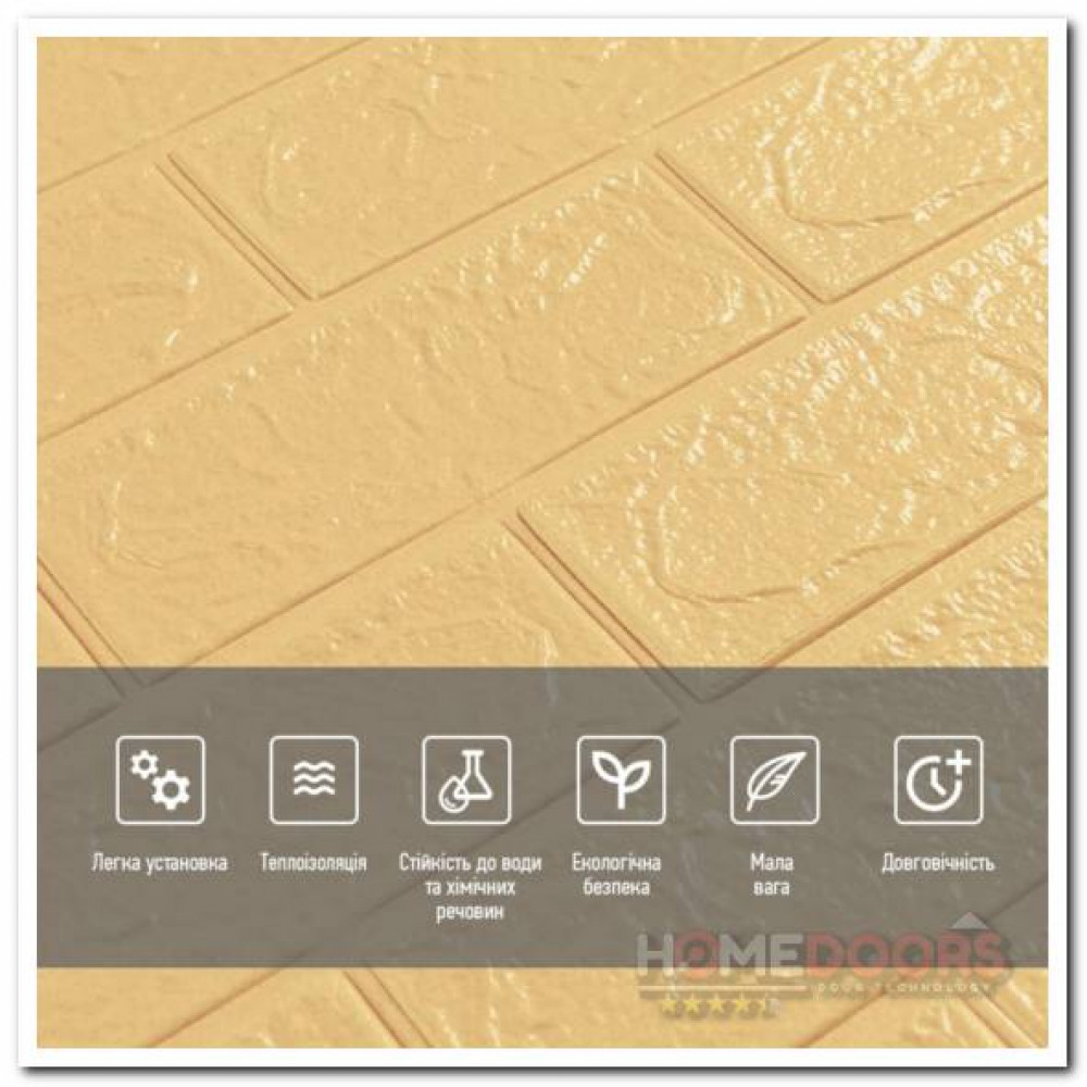 Декоративные 3D панели на самоклеющейся основе под желто-песочный кирпич. Теперь можно с легкостью сделать ремонт за 1 день! При этом не нужно искать подрядчиков для ремонта, нет пыли и строительного мусора в доме.