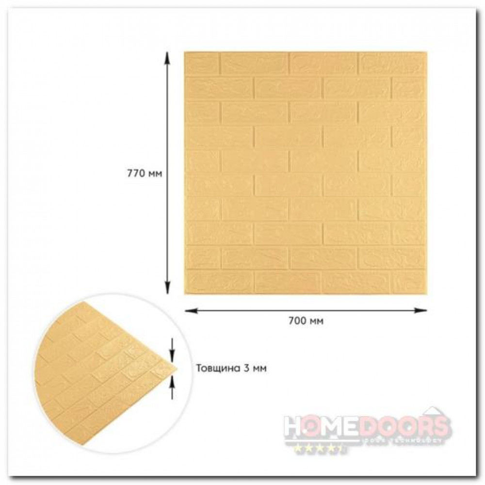 Самоклеящаяся декоративная 3D панель желто-песочный кирпич 700x770x3мм