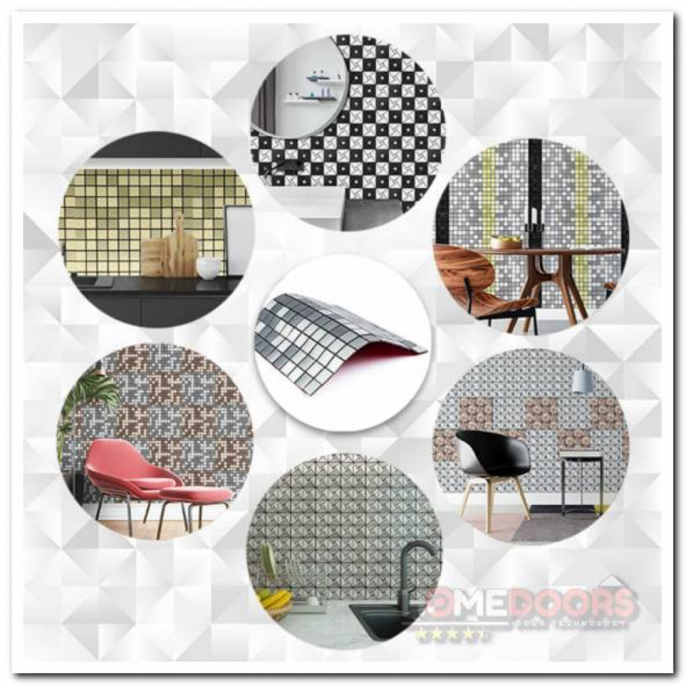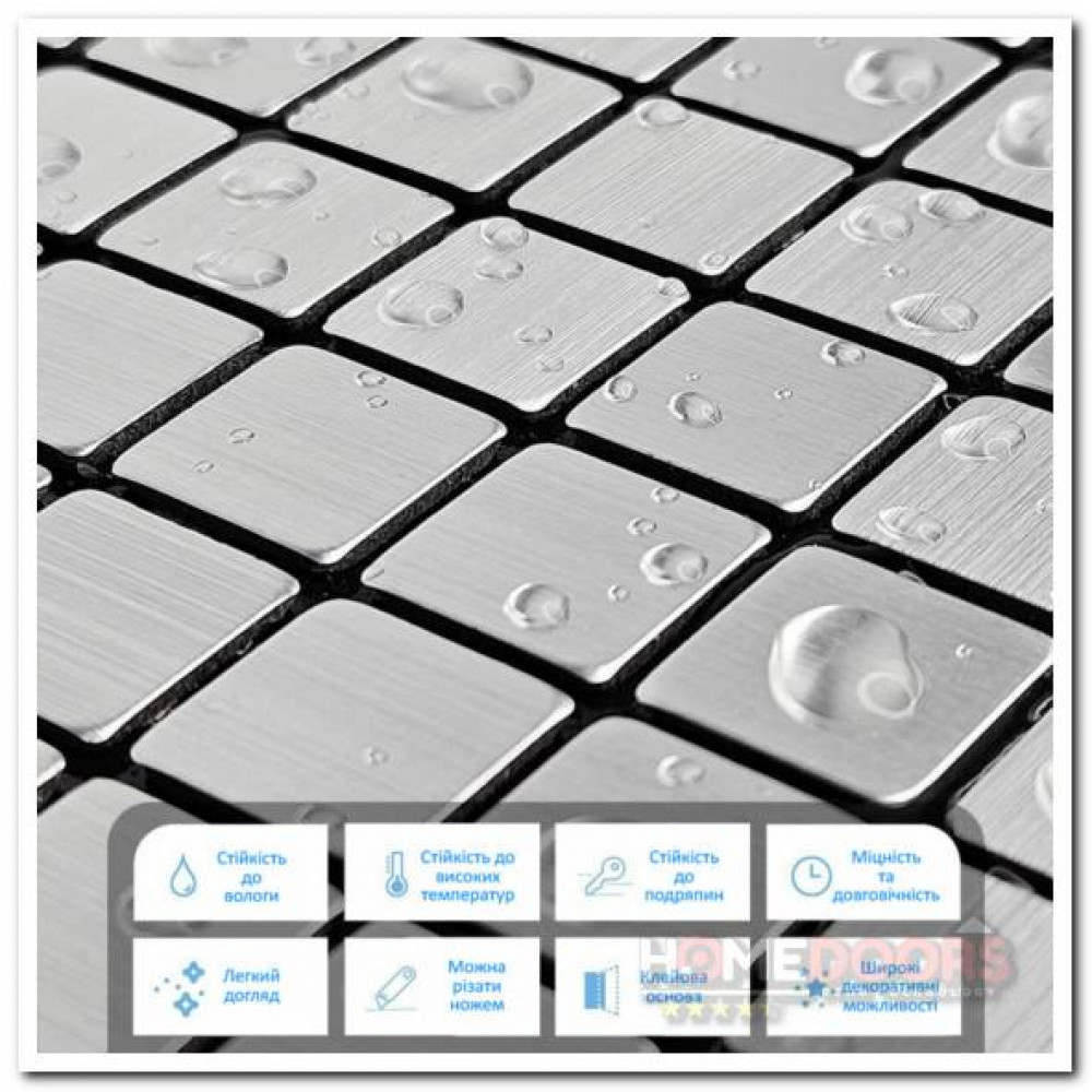Материал предназначен для внутренней отделки в основном, но свойства алюминия позволяют использовать этот материал для внешних работ. Плитки на самоклеящейся основе.
