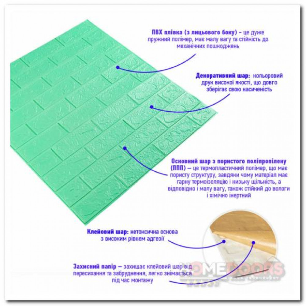 Декоративные 3D панели на самоклеющейся основе под кирпич мята. Теперь можно с легкостью сделать ремонт за 1 день! При этом не нужно искать подрядчиков для ремонта, нет пыли и строительного мусора в доме.