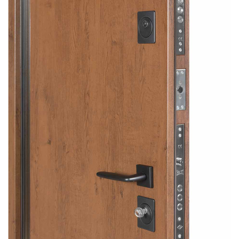 Вхідні двері BULAT - Термо House 705 оснащені надійними замками і фурнітурою, що забезпечує високий рівень безпеки вашого будинку. Верхній замок - це сувальдний замок КАLЕ 257 виробництва Туреччина. Нижній замок - це під циліндр замок КАLЕ 252 також від Туреччини. Циліндровий механізм розміром 50x50 мм також виготовлений в Туреччині.