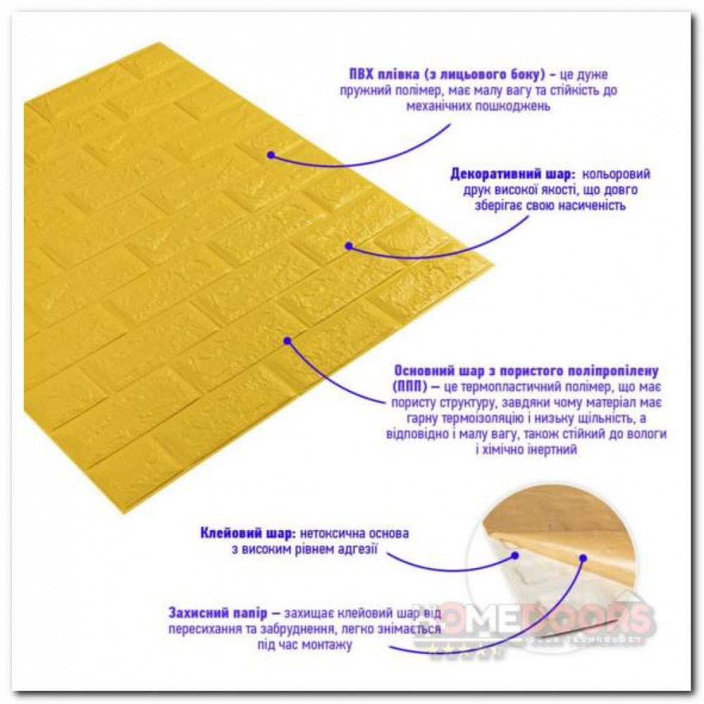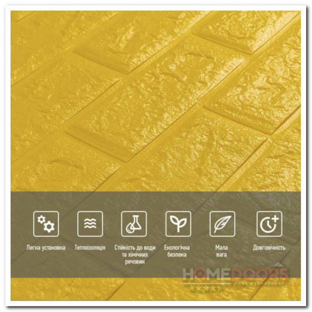 Декоративна 3D панель самоклейка під цеглу Жовтий 700х770х5мм (010-5)