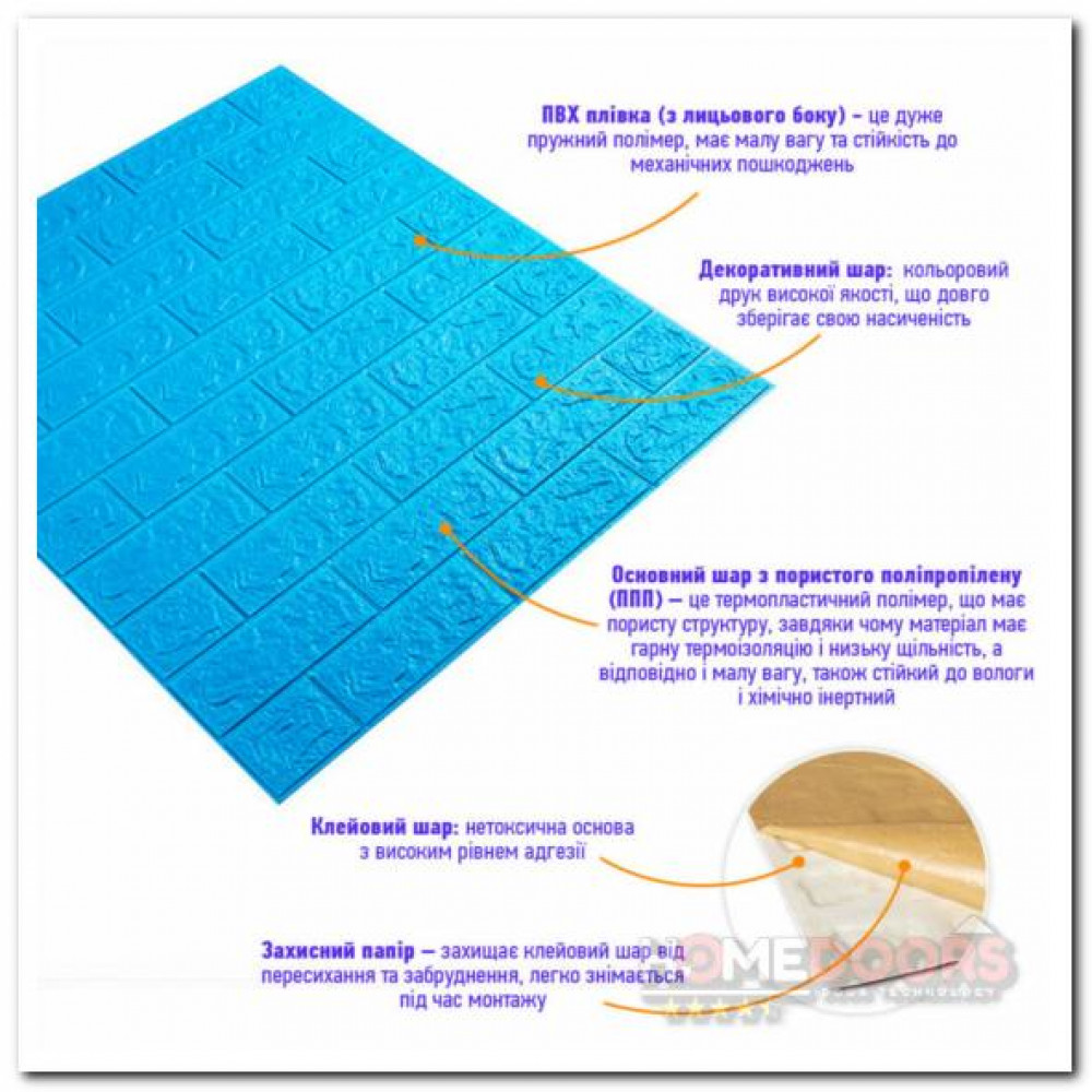 Декоративна 3D панель самоклейка під цеглу Синій 700х770х5мм (003-5)