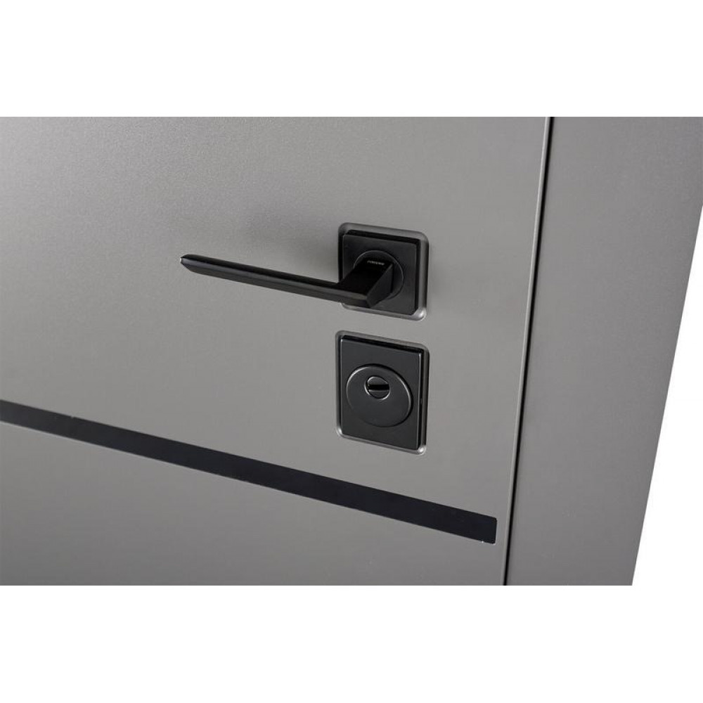 - Дверне полотно виготовляється з металу 1,5 мм та укомплектовано двома МДФ накладками товщиною 16 мм ззовні та 10 мм всередині, що надає високий рівень тепло- та звукоізоляції.