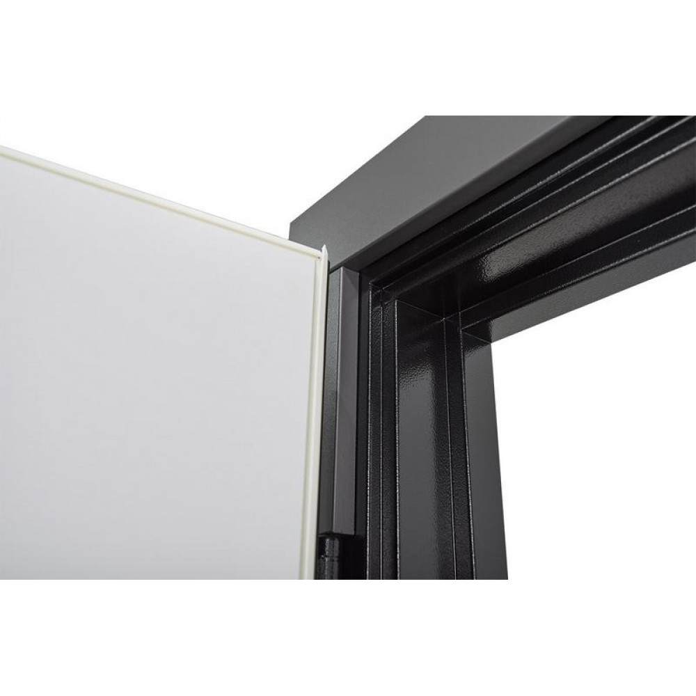 - Гнутий триступеневий профіль забезпечує максимальне прилягання дверного полотна до короба, завдяки чуму досягається дуже високий рівень тепло і шумоізоляції.