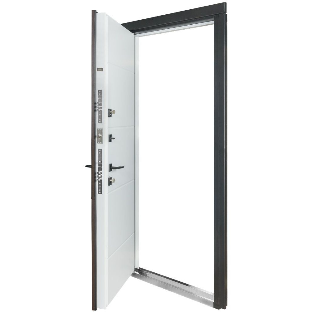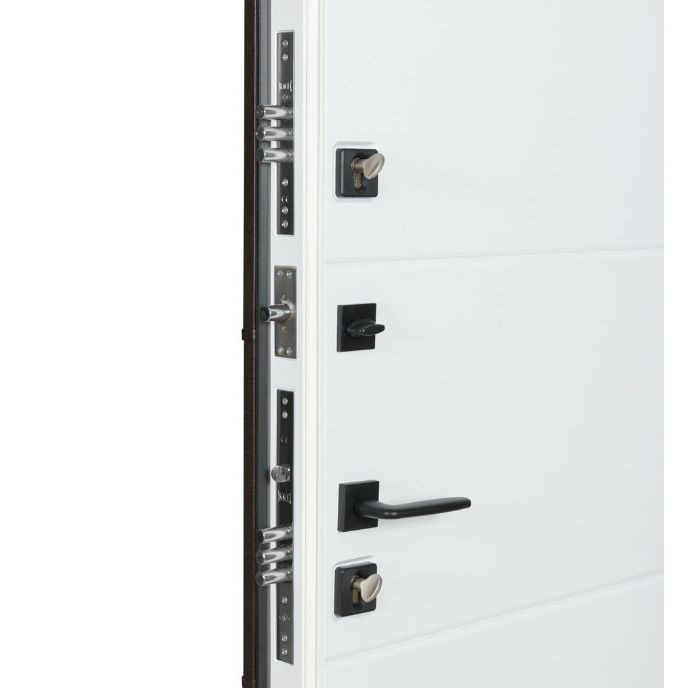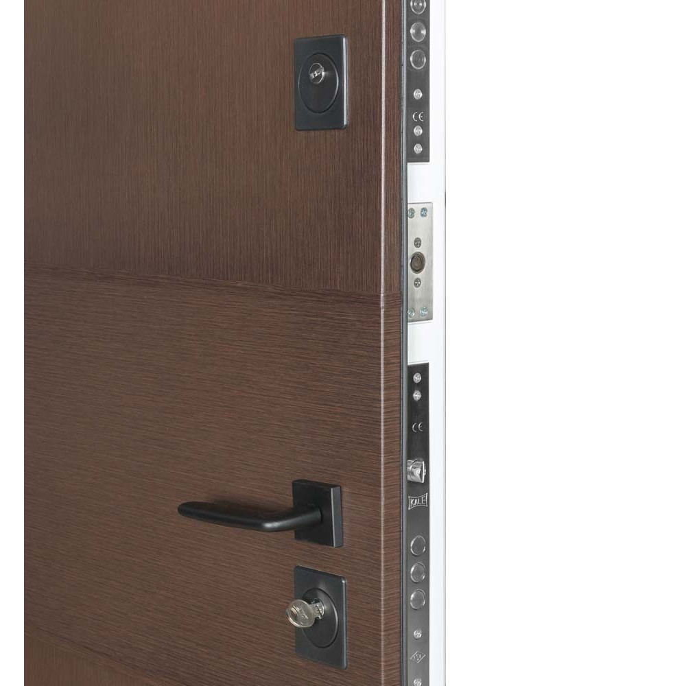 Замкова система складається з двох замків: циліндрового замка Kale 252 та сувальдного замка Kale 257 LX з нічним засувом, обидва з гарантією 5 років. Це забезпечує максимальний рівень безпеки та надійності дверей.