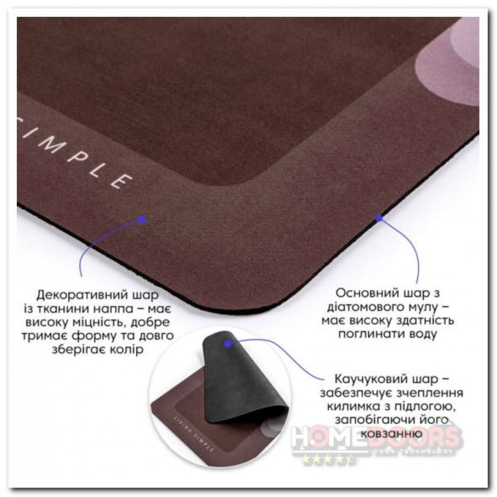 - Мгновенное поглощение влаги благодаря микропористой структуре - всегда сухая поверхность коврика, несмотря на непросушенное состояние